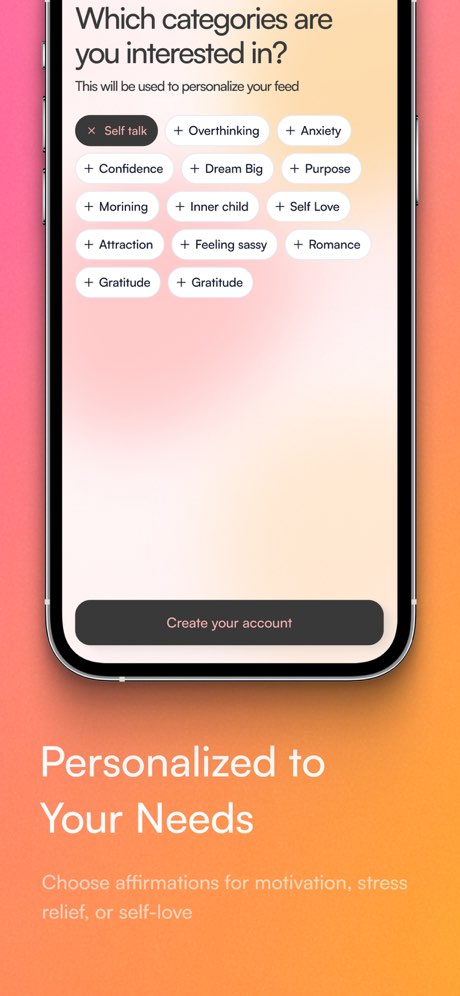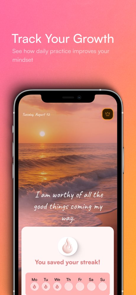 Most affirmation apps deliver generic, repetitive content that fails to adapt to the user’s emotional state, goals, or long-term growth. Users quickly disengage due to lack of personalization and meaningful progress tracking.